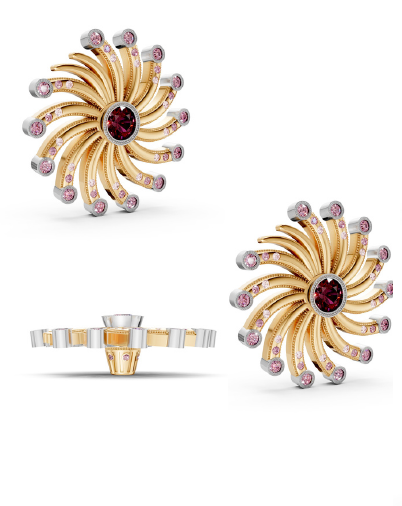 Set along each spiral tip are pink sapphires, stones of quiet renewal. They do not sparkle to dazzle, but to soften. The spiral itself - deliberate, balanced, and etched with texture - reminds us that grief, too, can be a form of love in motion.